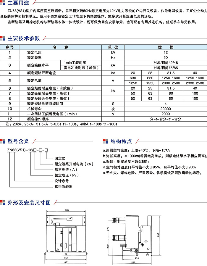 ZN63(VS1)-12户内高压真空断路器