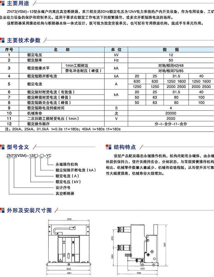 ZN73(VSM)-12永磁户内高压真空断路器