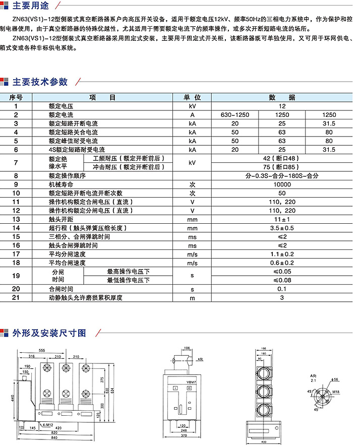 ZN63(VS1)-12侧装式户内高压真空断路器