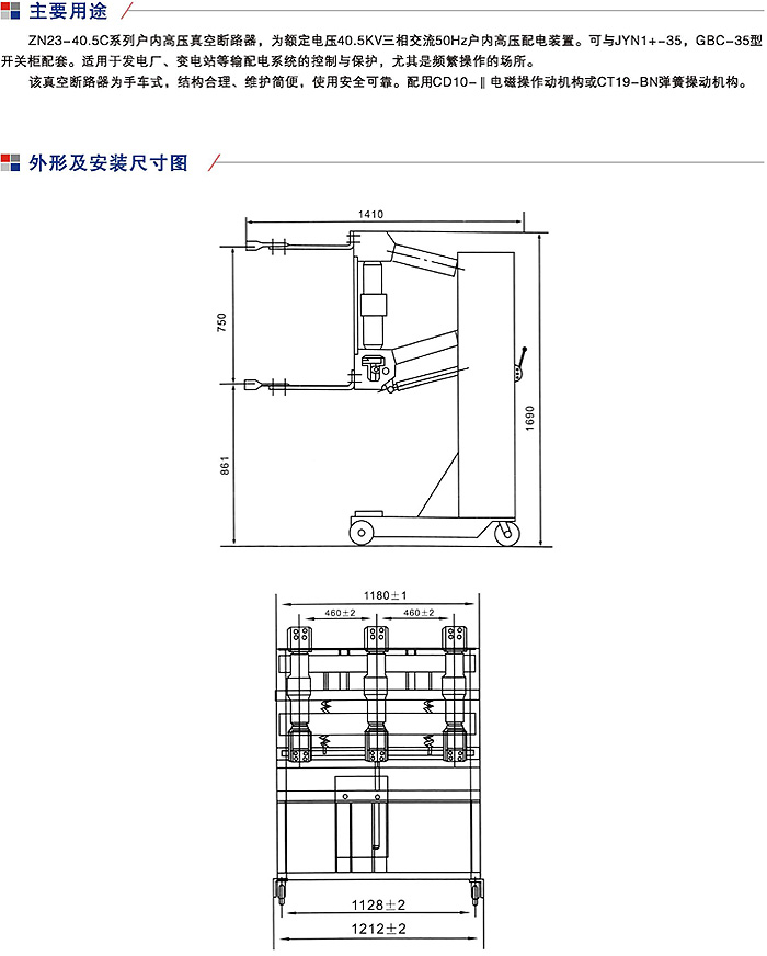 ZN23-40.5C系列户内手车式高压真空断路器